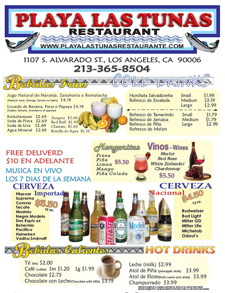 Menu Playa Las Tunas